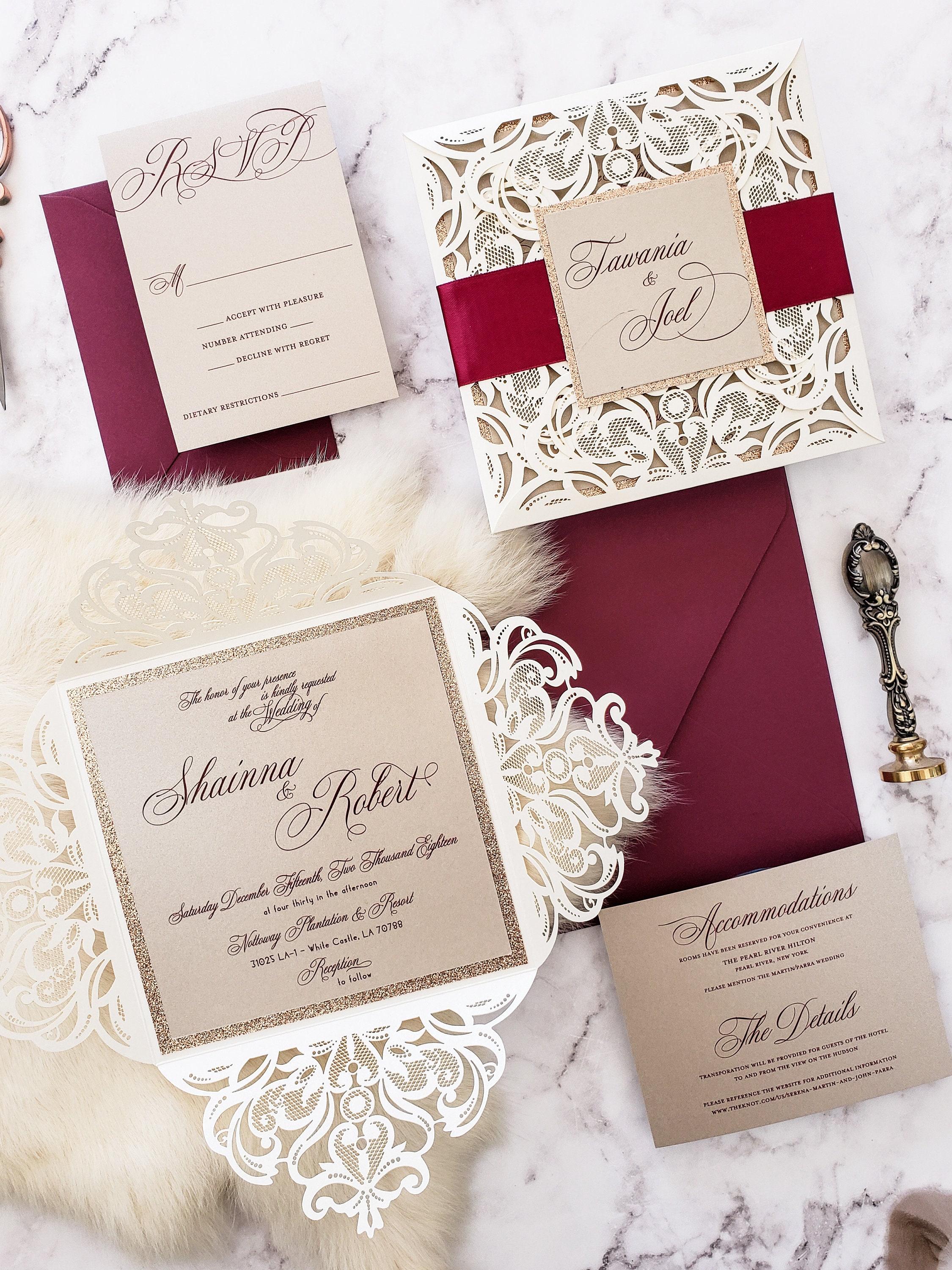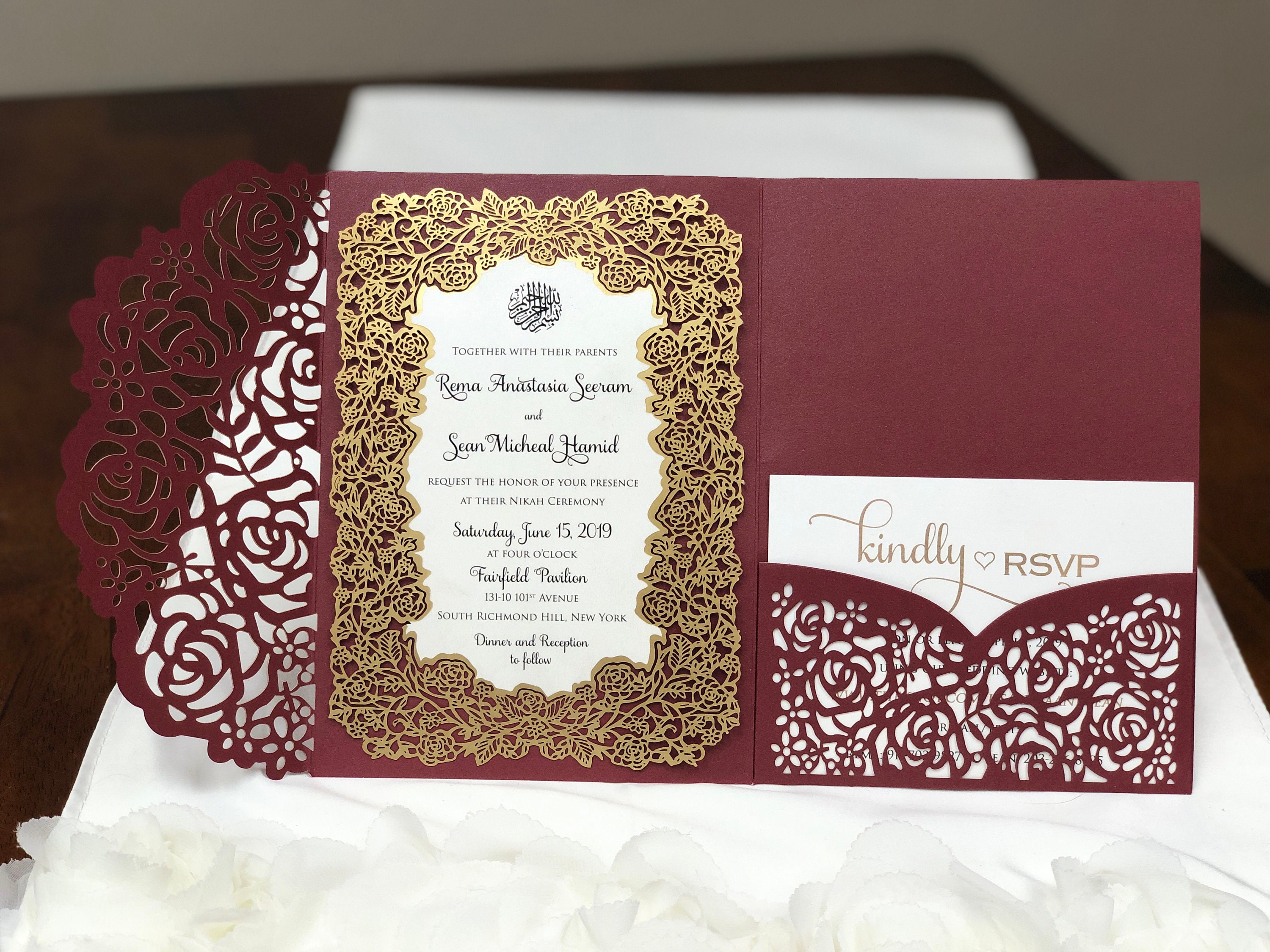 Buy Winter Laser Cut Wedding Invitation Burgundy And Rose Gold Online In India Etsy